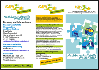 Die Nachbarschaftshilfe freut sich über Frauen und Männer, die sich für diesen Dienst engagieren. Auch hier informiert Sie Frau Rieth sehr gerne.